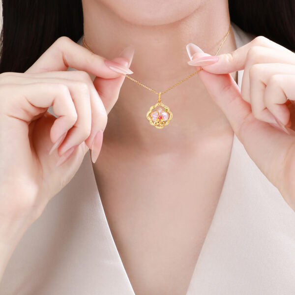 5G清雅貝雕鎏彩花卉蝴蝶蘭套鏈