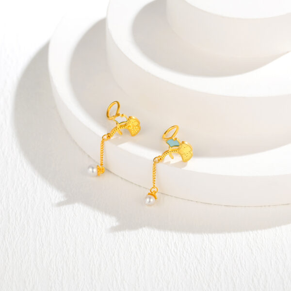 5G絢麗螺鈿珍珠銀杏葉耳釘